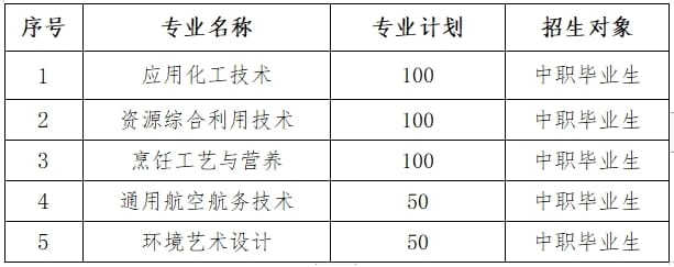 第十一条 2024年学校设置高职单独招生专业5个,总计划400人,具体分专业计划等情况详见下表。(注:招生对象为中职毕业生)
