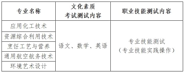 第十四条 此次高职单招招生考试采取“文化素质+职业技能测试”的模式,考试时间为3月31日(其中文化素质测试时间为上午9:00-11:30,专业技能测试时间为下午13:30-18:00)。各专业考试方式具体见下表。